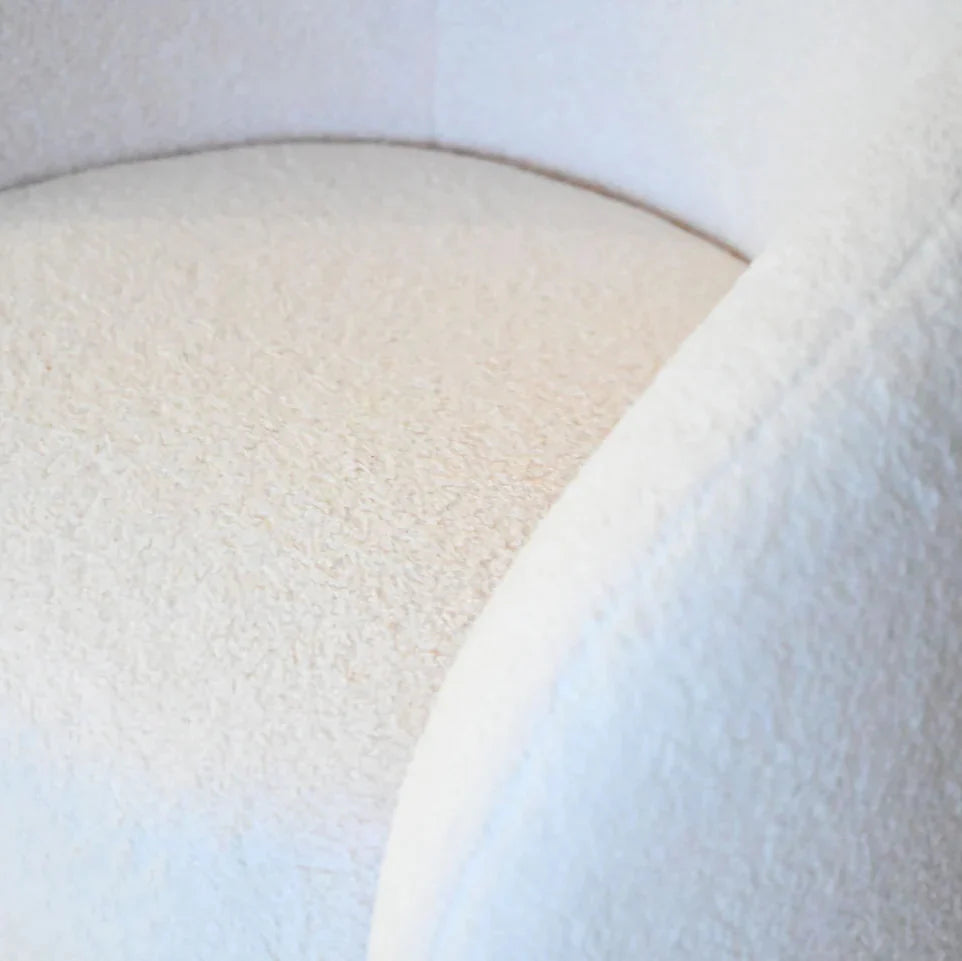 Le fauteuil pivotant Dune est magnifiquement conçu et doté d'un rembourrage moelleux, avec un mécanisme pivotant à 360 degrés. Sa taille est idéale pour un coin lecture ou même pour deux personnes côte à côte dans un petit espace de vie. Il est habillé de trois coloris Boucle tendance : rose poudré, vert kaki et un élégant crème.