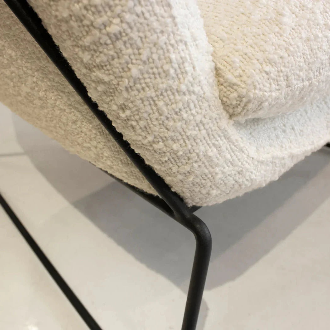 Dans un monde où les espaces sont de plus en plus restreints, la chaise Jasper s'adapte parfaitement, tant par sa taille que par son style. Son élégant cadre en acier thermolaqué noir est recouvert d'un tissu bouclé doux et moelleux à l'aspect vieilli.