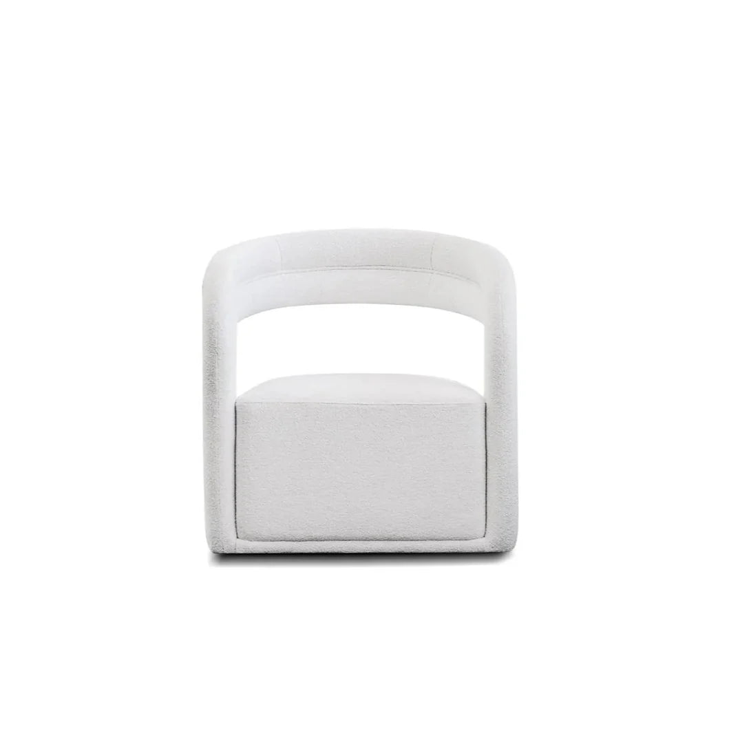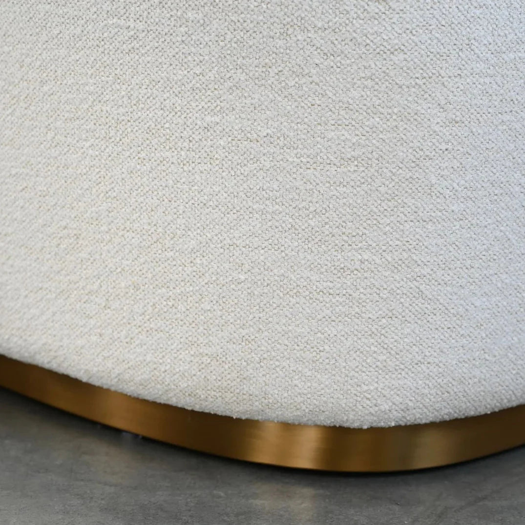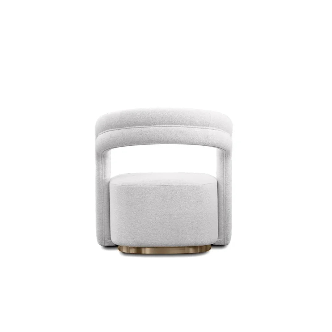 Le fauteuil Juniper Lounge allie avec brio élégance moderne et confort douillet. Affichant une silhouette fluide et sculpturale, son design est doté d'un dossier incurvé enveloppant et d'accoudoirs intégrés qui créent une atmosphère harmonieuse et douillette. Revêtu d'un luxueux tissu blanc cassé, il repose sur un subtil piètement en bronze brossé qui apporte une touche glamour sans occulter son minimalisme raffiné. Parfait pour les espaces de vie contemporains ou les intérieurs de boutiques, le fauteuil Juniper Lounge allie style et détente.