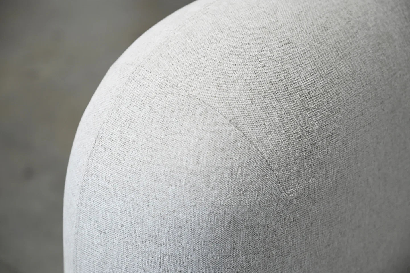 Le lit rembourré Rubble est drapé d'un élégant tissu crème latte. Ce lit respire l'élégance. Avec son cadre fin et ses pieds minimalistes en chêne blanc, il présente une esthétique raffinée et épurée.