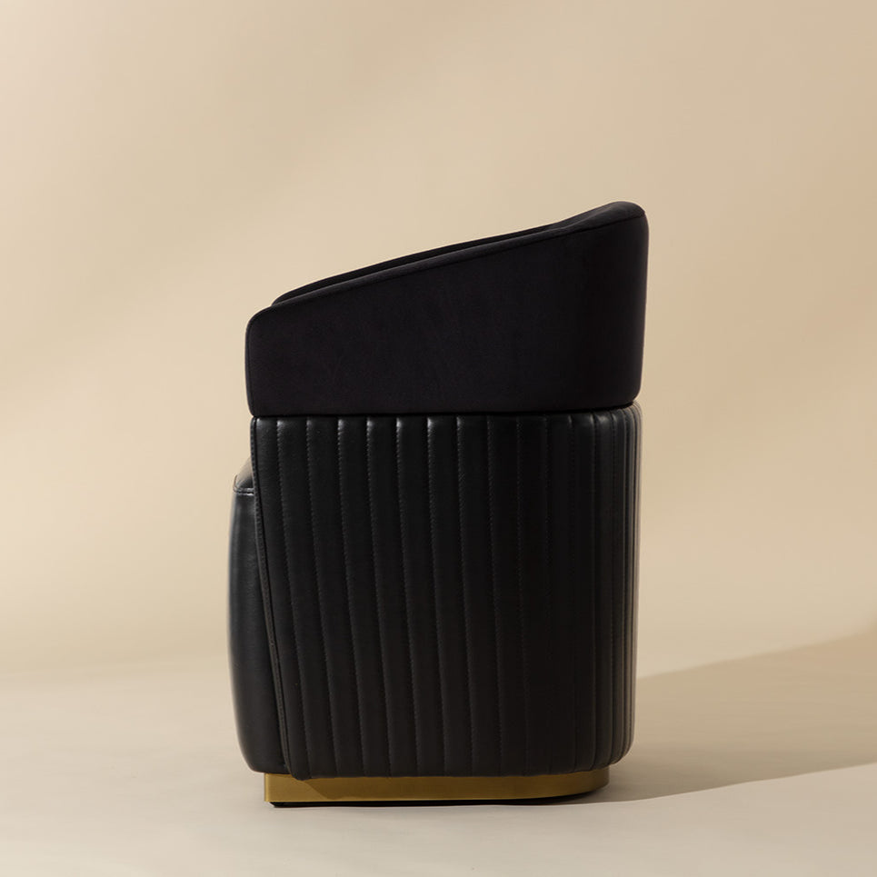 Les invités seront séduits par les détails uniques de ce fauteuil à roulettes. D'un style contemporain, ce fauteuil est doté d'un dossier capitonné en tissu noir Abbington et cuir reconstitué noir Cantina, avec une structure en laiton. Manipuler avec soin : Ce modèle est réalisé en cuir reconstitué. Le cuir reconstitué est un mélange de cuir reconstitué et de matières synthétiques conçu pour reproduire les caractéristiques naturelles du cuir ; de ce fait, les variations de couleur, les marques, les plis, les rainures et les légères rayures sont acceptables et appréciées. Chaque pièce est unique. Consultez notre page Entretien pour plus d'informations sur la façon de préserver la beauté durable de ce meuble.