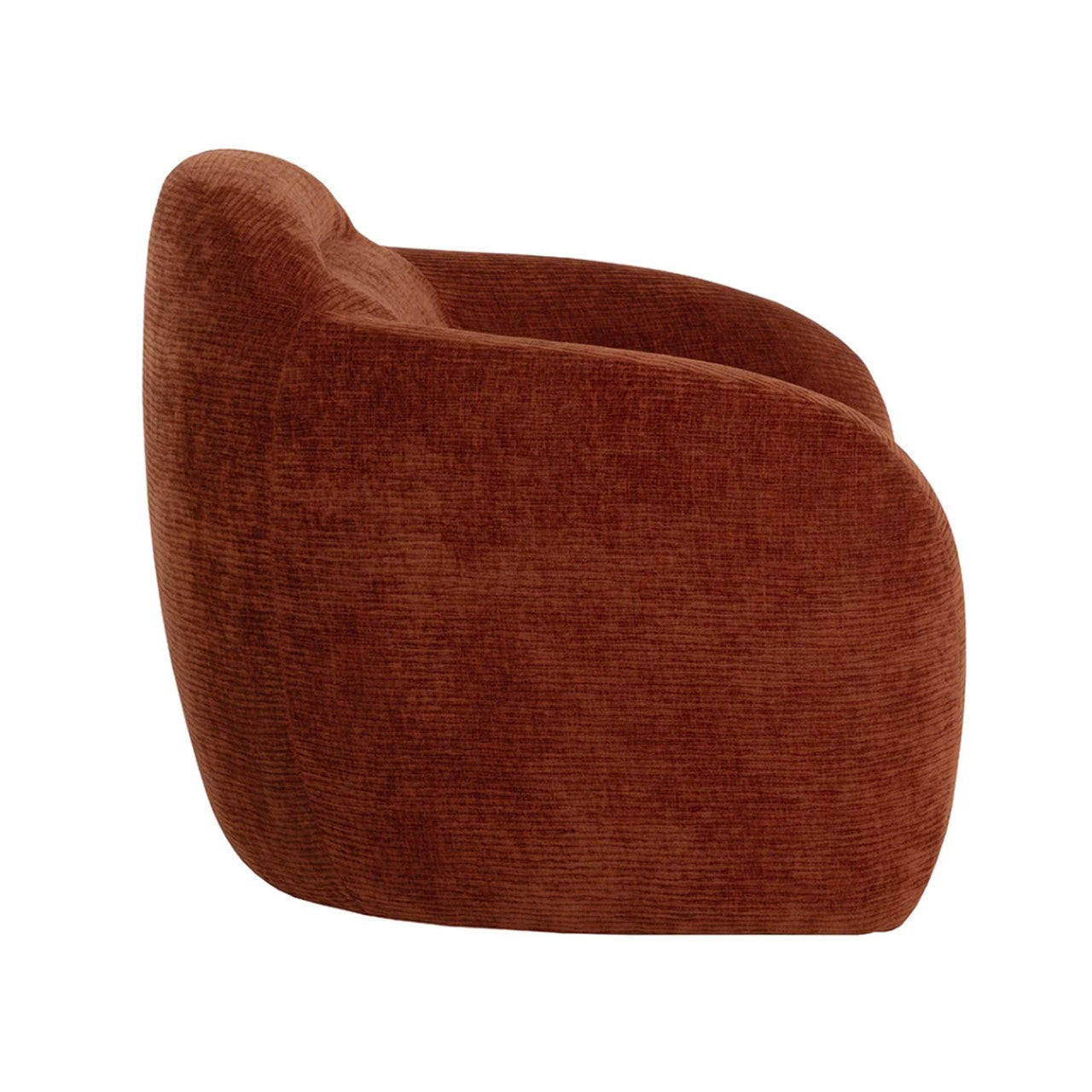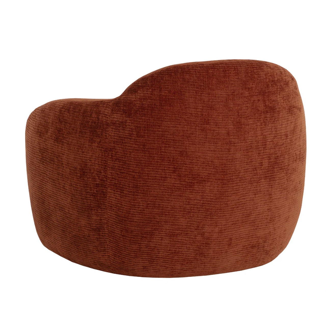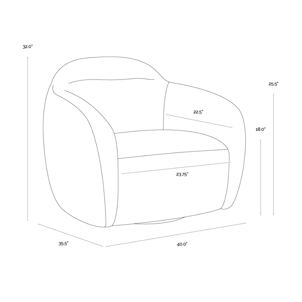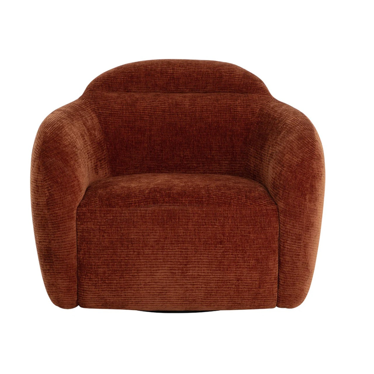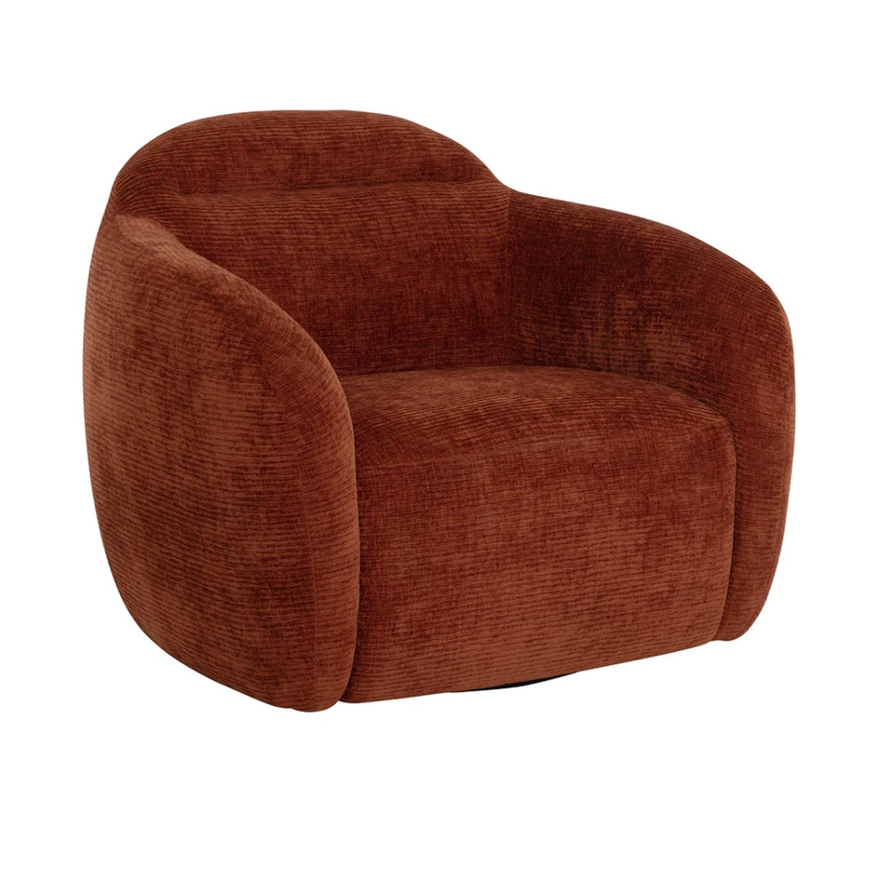 Les courbes généreuses et les contours moelleux du fauteuil pivotant Ismo créent un espace confortable et apaisant. Entièrement recouvert de tissu Opera Spice et Hailey Moon, ce fauteuil aux courbes élégantes est une œuvre d'art moderne.