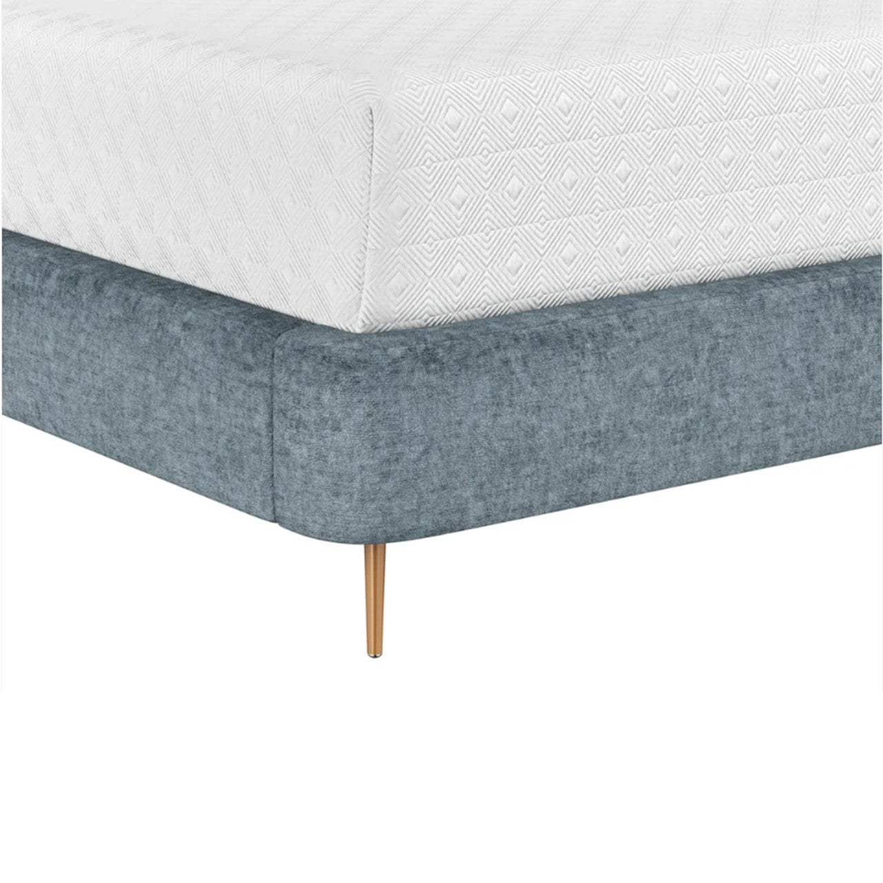 Doté d'un design élégant d'inspiration côtière, ce magnifique lit respire le confort. Sa tête de lit moelleuse aux angles doux ajoute une touche de confort et de fluidité. Il est recouvert de tissu taupe Bergen et doté de pieds en acier cuivré. Aucun sommier n'est requis et les lattes sont incluses.