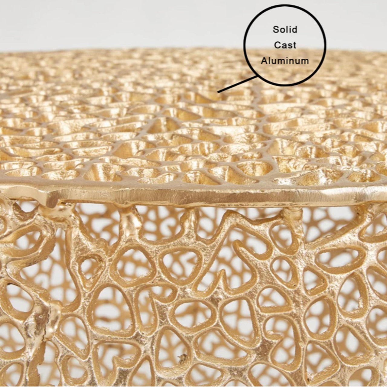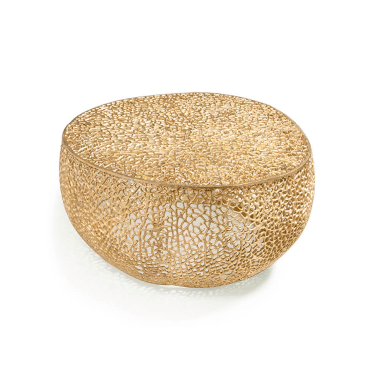 - Cette table basse en aluminium Dolce est moulée en aluminium massif puis poncée et finie par un artisan qualifié en Inde, ce qui fait que chaque pièce est unique et possède son propre caractère.